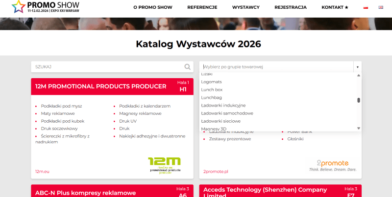 Jeśli dana firma ma zapotrzebowanie na określony produkt (przykładowo: co roku zamawiany jest kalendarz/koszulka/kubek/gift box), organizatorzy przygotowali specjalny katalog, dzięki któremu można znaleźć wystawców, którzy produkują lub dystrybuują dany asortyment. To duże ułatwienie w przypadku ograniczonego czasu odwiedzającego.