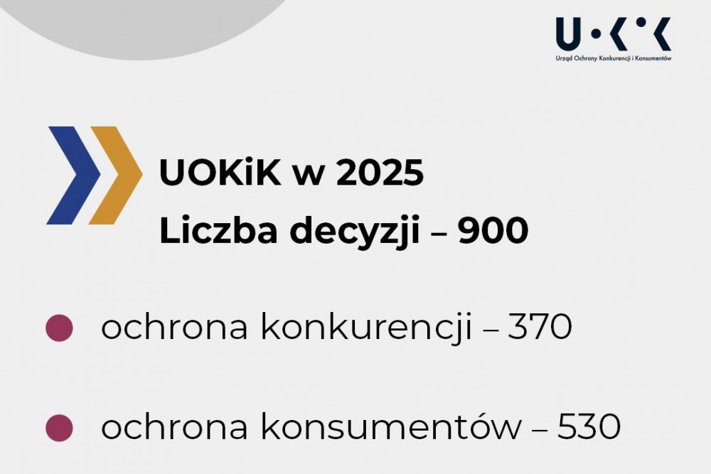 W 2025 roku prezes UOKiK wydał 900 decyzji. 369 z nich dotyczyło ochrony konkurencji, a 530 – naruszeń praw konsumentów. Kary za praktyki antymonopolowe wyniosły ponad 580 mln zł, natomiast za naruszanie zbiorowych interesów konsumentów – 545 mln zł.